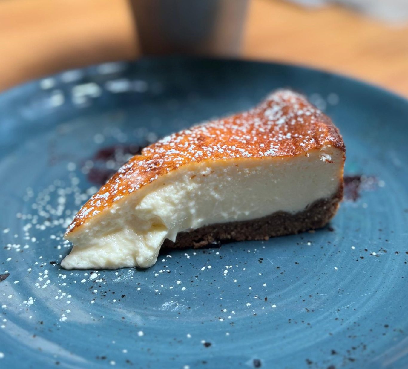Tarta de queso cremosa con confitura de arándanos – 6 €